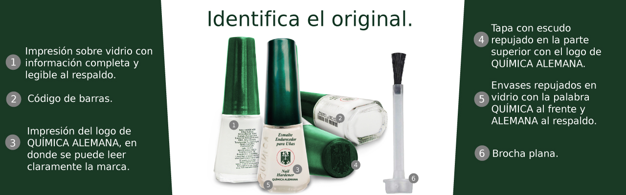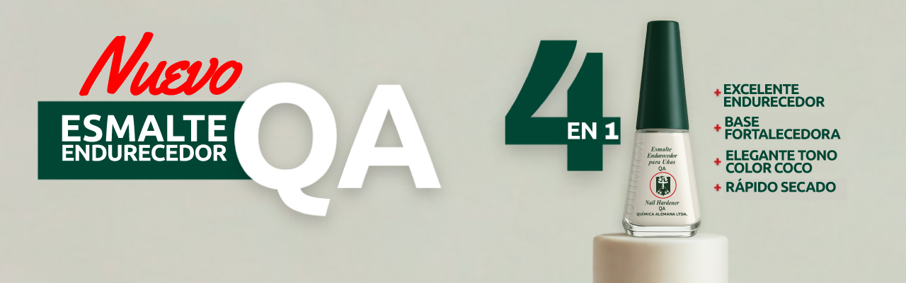 Cada persona es diferente, por eso, en QUÍMICA ALEMANA, podrá encontrar un producto especial para cada necesidad, que le ayudarán a resaltar su belleza de forma natural. Encontrará nuestros productos de siempre, nuestro tradicional esmalte endurecedor de uñas, henna para el cabello, y demás cosméticos que le permitirán lucir siempre bella.